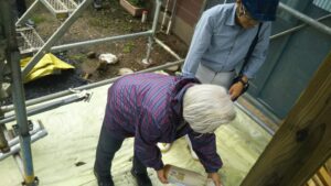 挨拶終了後は、記念写真! 担当棟梁は、「バッチジー親方」「かっちゃん棟梁」です。
