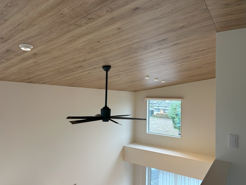 吹き抜け部分の写真です。ブラインドは、電動で開閉できます。 キャットウォークがありますが
