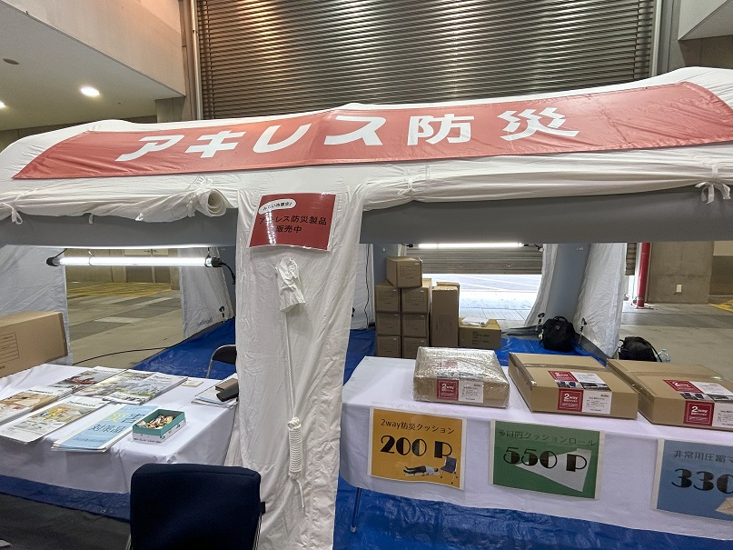 入りますと、防災関係のメーカーが多数出展していました。 アキレスさん断熱材だけかと思いましたら