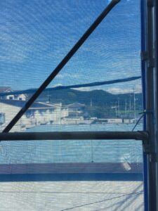 こちらは、15日に上棟しました高砂町のK様邸です。幕を貼りました。