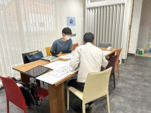 夕方は、吉水駅前で新築中のT様に来所頂きました。いつも「正也ン」が打合せ頑張ってくれています。(^^)/