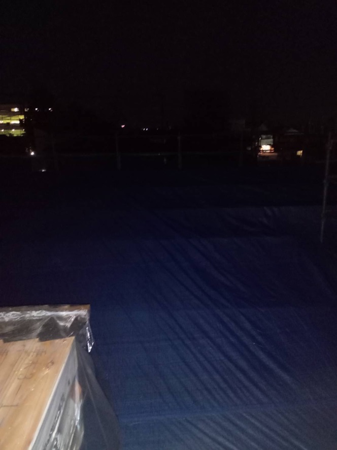 最後にシート養生まで終わりましたが、一番陽が短い時期なので真っ暗写真ですみません。 この写真は、明日の朝撮ります。
