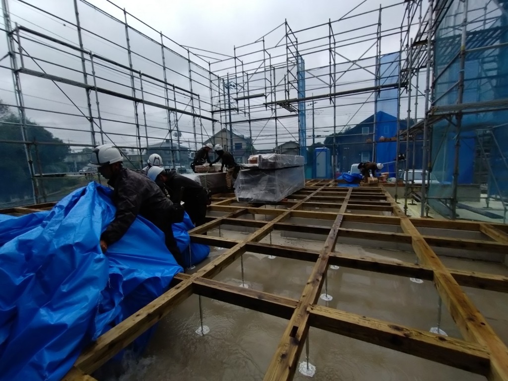 雨なので養生シートを取りたくない気持ちですがシートを取り材料を範裕していきます。