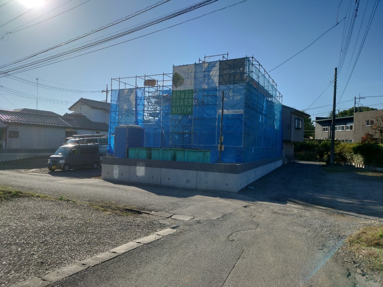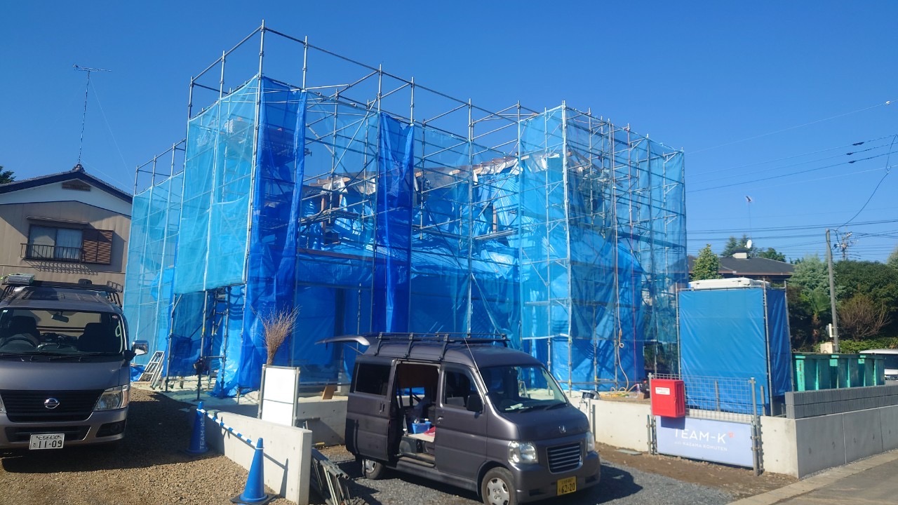 現場幕も張り Kの幕も現場イメージ幕になればと思います。 左のハウスガードの幕が「緑の柱」の幕です