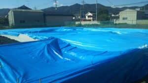 墨だしが終わり最後にシート養生を土台搬入時まで行います。