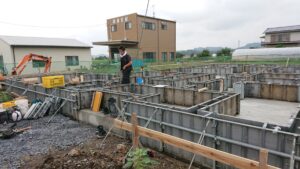 先日立ち上がりコンクリートを打ち~型枠を外しました。