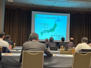 ハウスガード部会では、現状業界の報告で、かなり厳しい現状の中、ハウスガード加盟店156社から6社増え、年間750棟増えた結果で