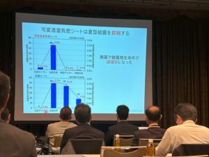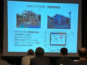 マニアックな実験ですと、「ものづくり大学」実験棟で 夏型結露の実験をしています。通常のペーパーバリアと、スマートという可変型のシートで実験です。 ボードを一度はり、実験結果を出し、ボード張替~シート張替で実験したようです。