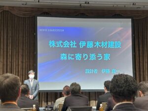 その後、「ハウスガードコンテスト」の表彰式を行いました。16棟の応募のうち4物件が賞を頂けるようです。