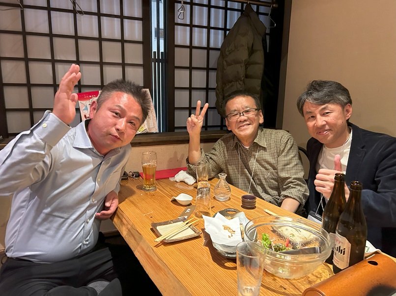 また「懇親会」参加です。 平松社長と久しぶりに楽しいお酒が飲めました。向かって右は、いつも構造計算でお世話になっています。