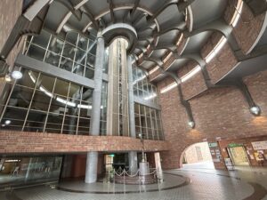 中は、このように吹抜けの大空間がです。 この建物も修復工事で3年間使えなくなるようです。
