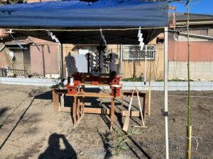 準備している写真です。 今日の宮司さんは、出雲神社の宮司さんです。テントまで準備してもらいました。