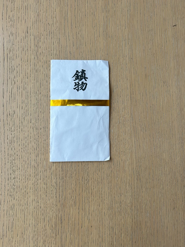 鍬入れの儀式で鎮めました「鎮め物」は、持ちかえり基礎工事の時に基礎の真ん中に入れます。