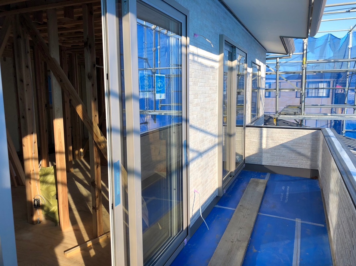 2階のベランダも完成して 足場解体後アルミ笠木を設置します。