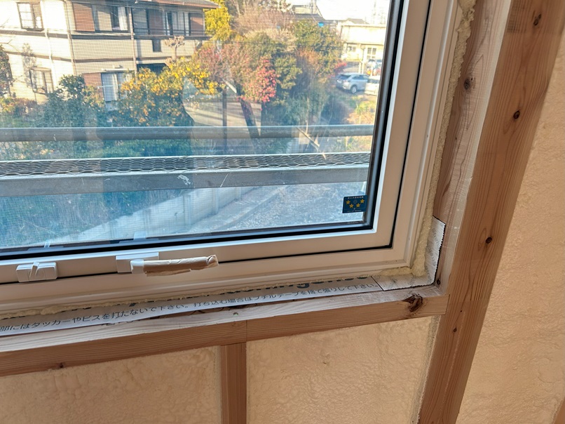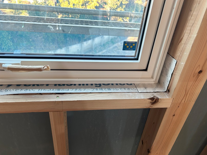 窓廻りのテープの張り方も順番がありそのように張ってあります。