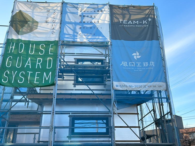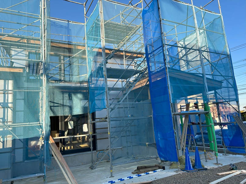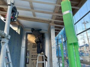 外壁の下地もほぼ完成して、軒天材も今日入りました。