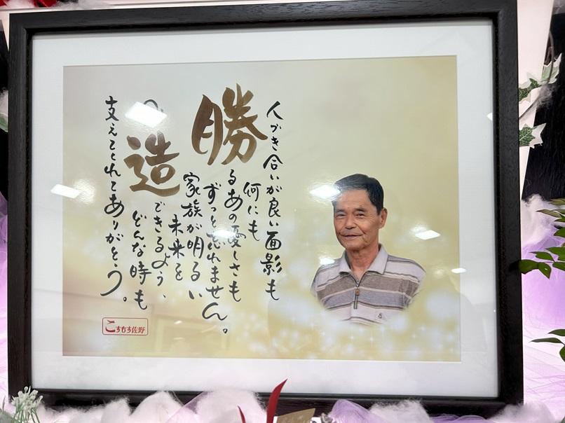 式場では、勝造さんの名前のちなんで飾ってありました。 「ありがとう」いう言葉しかでてきません。