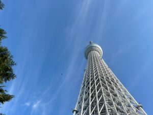 運動も兼ねて、スカイツリーまで歩いて到着、上空に飛行機が飛んでましたので撮ってみました。
