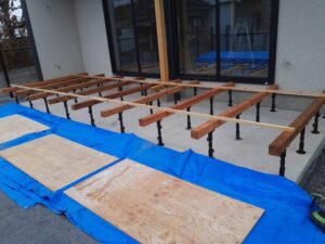 今日は、新入社員会社案内を行いました。 2024年1月16日 最終更新日時 : 2024年1月16日 team-K風間 今日は、寒い一日でした。雪が途中で降ってきました。 今日は、新入社員会社案内で田沼モデル案内をしました。 2人共楽しそうに見学をしていました。 21日から正式入社になりますので楽しみです! 今日の現場は、「地元建築家と造る家」の大祝町のT様邸のデッキです。 大引きを設置して~ 板を張り始めます。 無事完成しました。 高級デッキですね~