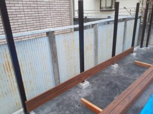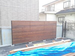 こちらは、地元建築家と造る家 大祝町の家 T様邸です。 外部のウッドフェンスがはじまりました。