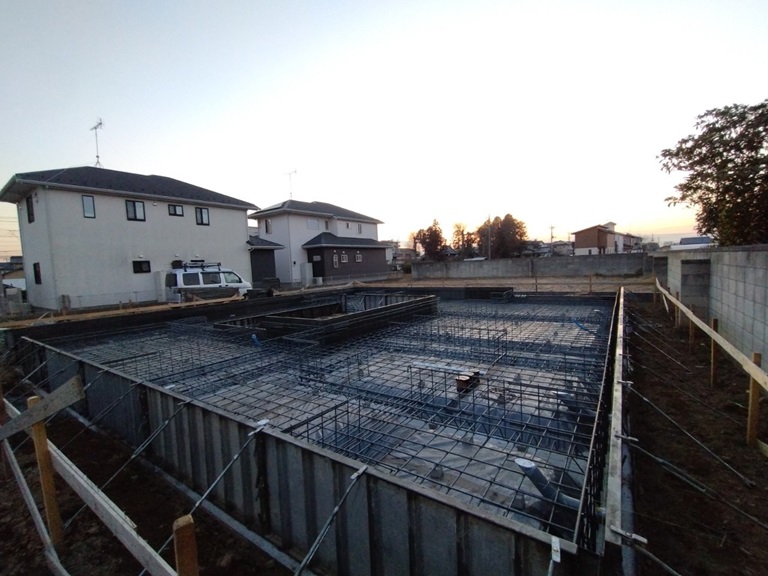 こちらは、高萩町のK様邸です。基礎工事が進んでいます。鉄筋検査を行いました。