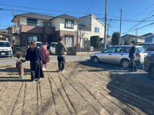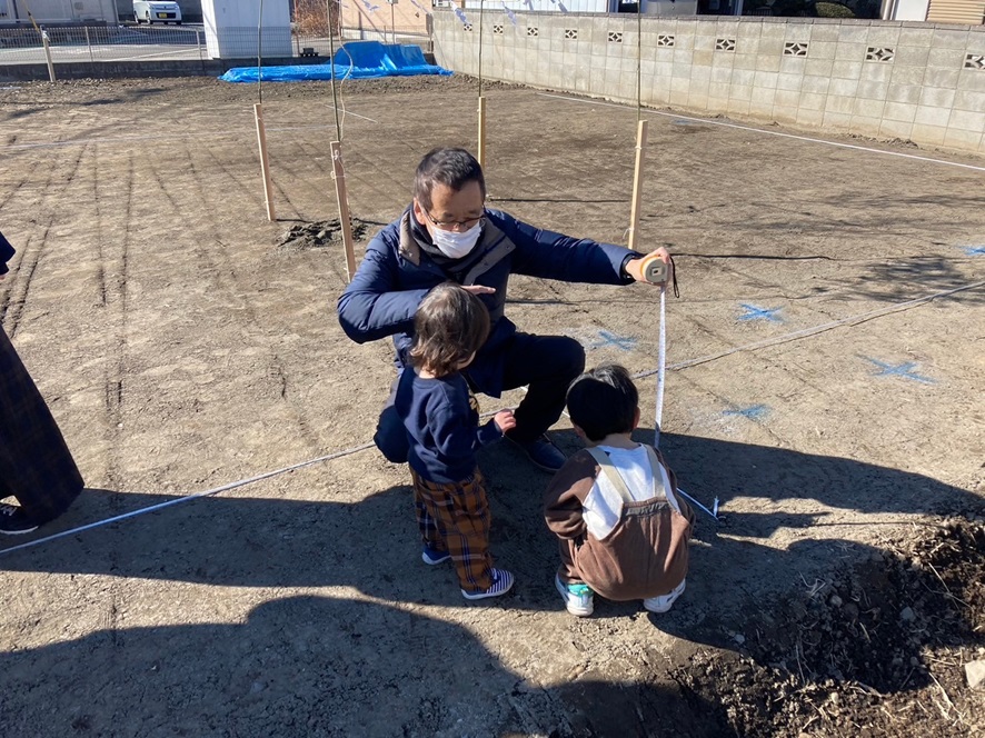 現場では、GLの高さの設定や、ご近所まわりもさせて頂きました。ありがうございました。 お兄ちゃん達にも 玄関の高さの打合せに参加して