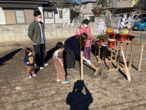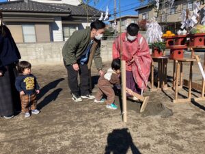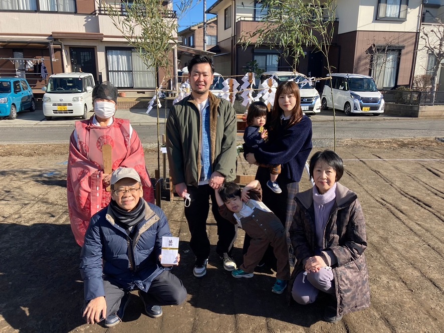 O様今日は、地鎮祭おめでとうございます。明日からいよいよ着工になります。よろしくお願い致します(カメラマン:ユーキン)