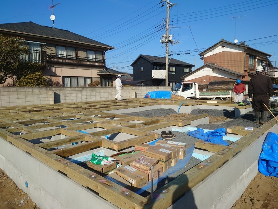 昨日、今日で高萩町のK様邸の土台敷を行いました。