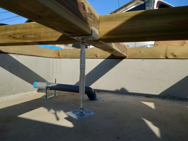 大引きを入れ、鋼製束も仮入れ部分もありますが入れて~