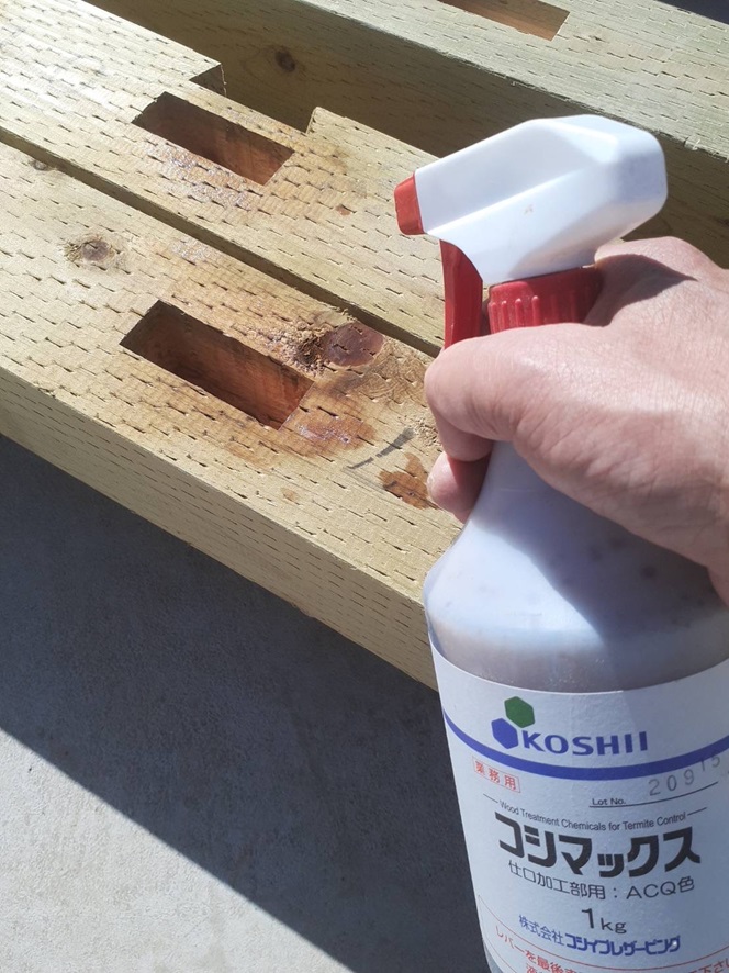 加圧注入材ですが、加工されている分は、「コシマックス」を塗布します。