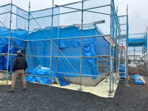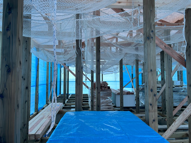 室内は、落下防止のネットが貼ってある状態です。 タイベックシルバーは、土曜日に