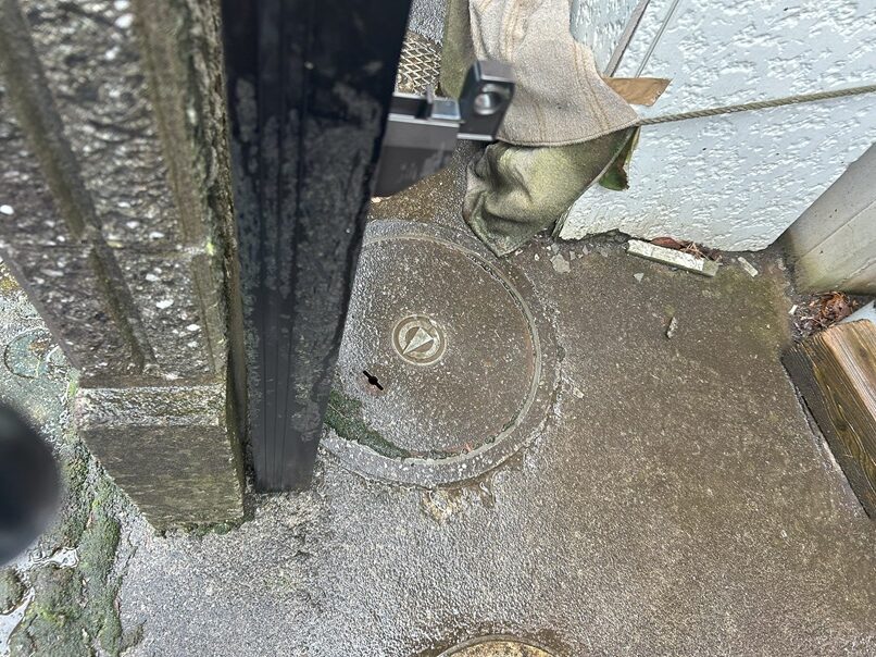 公共桝を確認しました。 真北に矢印が向いているのかと思いましたら 小山市のマークのようでした"(-""-)"