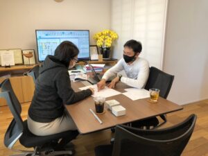 今日の午後は、植野町に新築予定のI様に来所して頂きました。 サッシの最終内容確認や、棚の打合せを行いました。