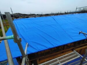 今日は、雨のい降る前にシート養生を行いました。一安心です。(^^♪