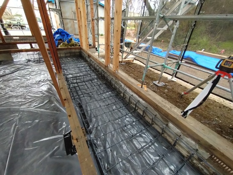 北面の水回りの基礎は、ほとんど鉄筋をからめて補強します。