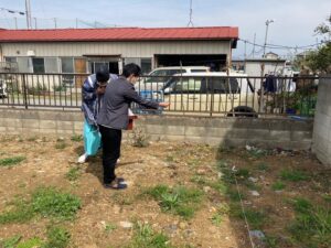 地鎮祭の時は、地縄確認(建物の位置)や、GL(基準の地盤の説明)、今回太陽光の効率によるシミュレーション、詳細工程表説明を行いました。