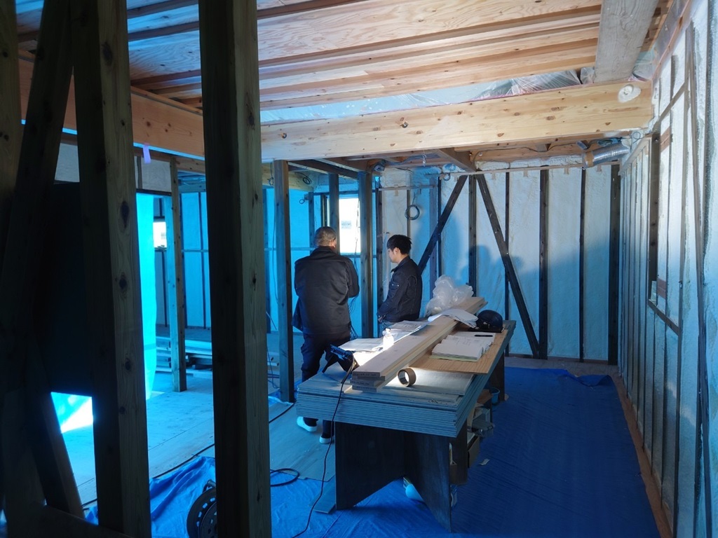 今日の打合せ現場、高萩町のK様邸です。「フジマー」監督と、「ターシー」(テクノス社長)とで建具の打合せをしています。