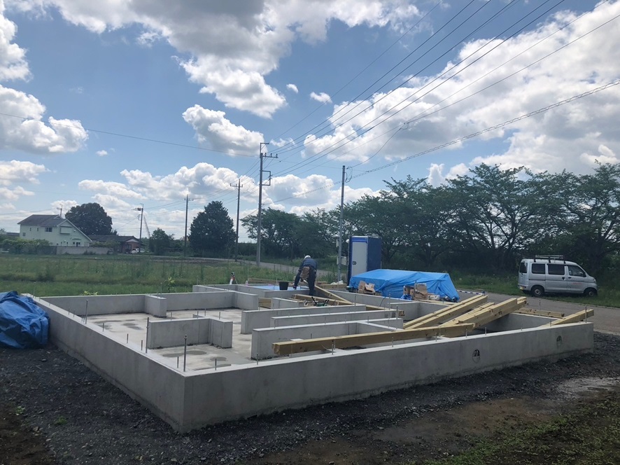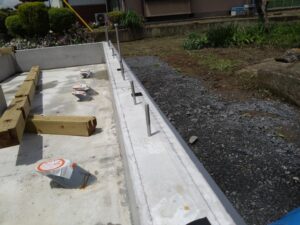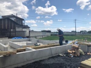 墨だしは、弊社監督が行いました。 まずは、「虫返しを付けます」(透明のテープのような物です1cmくらい基礎から出します)