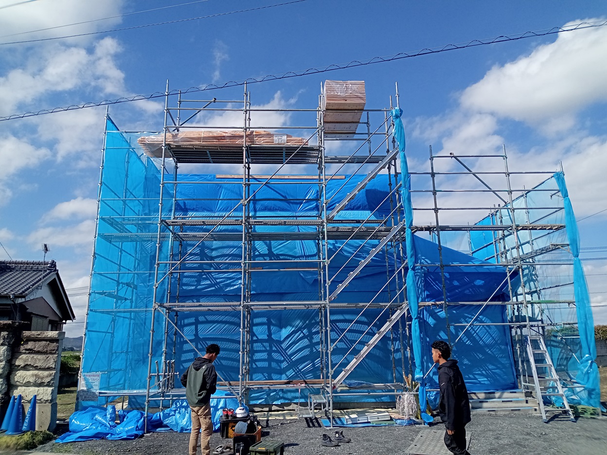 今日は、良い日になりました。 2024年5月10日 最終更新日時 : 2024年5月10日 team-K風間 今日は、朝は寒いくらいでしたがカラットした良いお天気になりました。 今日の午前中は、足利市のN様宅に現地調査をしに足を運びました。 新規プロジェクトの開始となります。 今日は、昨日の越名町のN様邸の建て方の報告をします。 このような感じで建てていきます。 1階の柱から建てて行き順調に進んでいきます。 西のKの幕も張りました。 東は、ハウスガードの幕ですね! 建て方終了して一安心という感じですね~ ブルーシート養生ご苦労様でした(^^♪ いよいよ明日は、上棟式になります