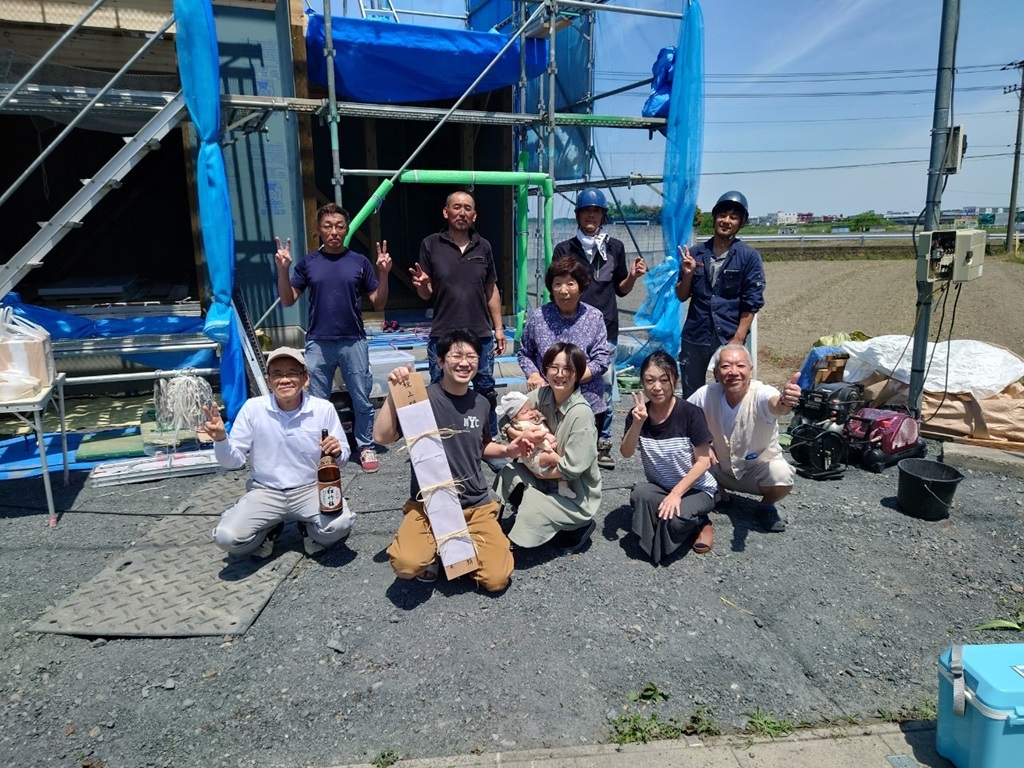 N様上棟おめでとうございます。 いろいろとお心遣いありがとうございます。お父様にもお心遣い頂きましてありがとうございました。 感謝申し上げます。 これから一生懸命工事の方進めていきますのでよろしくお願いします。m(__)m