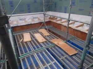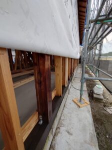 こちらは、佐野市高萩町のK様邸です。 外部の庇の下地ができてきました。(社員大工:アキラーからの報告)