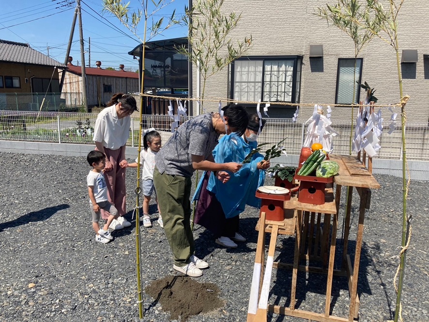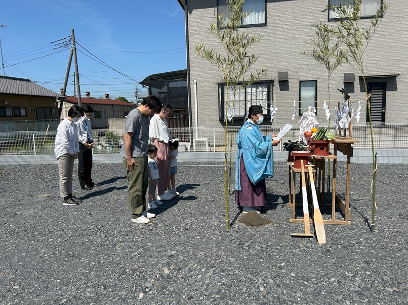 無事滞りなく地鎮祭が終了しました。 H様おめでとうございます。いよいよ来週から始まりますね。楽しみです!