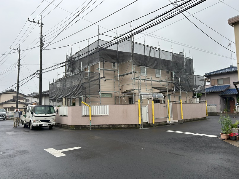 先週7日に足場を掛けました、大橋町のT様宅に顔をだしました。 今日は、屋根、外壁の洗浄を行いました。