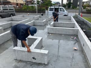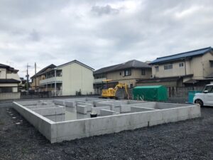 こちらは、植野町のI様邸です。 明日の土台敷の前の墨だし工事を行いました。