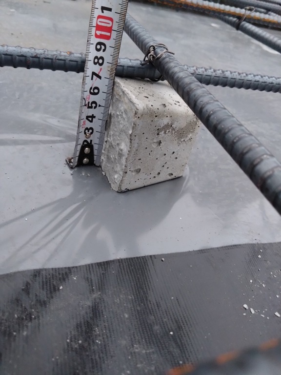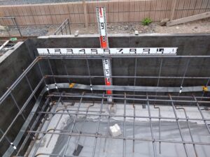 配筋の寸法です。 この時 止水板を設置しました。 検査後に土間コンを打設しました。
