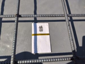 こちらは、検査には関係ないのですが、地鎮祭の時の「鎮め物」を建物中心に設置します。