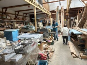 今日は、4年ぶりに工場の木工機械の刃を交換しました。  元「三井商会」の三井さんに来てもらい交換してもらっています。