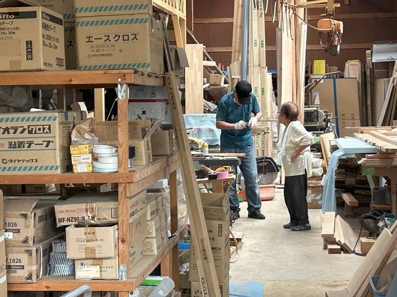 おふくろも92歳ですがまだ工場監督のような雰囲気で話ています。 手押し、自動、調仕上の刃の交換を行いました。これで