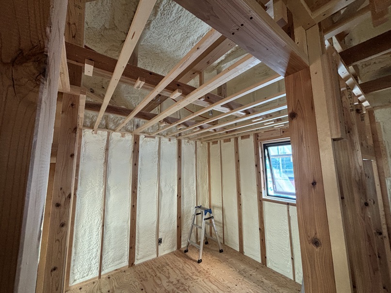 2階もウレタン工事が終了しています。綺麗な現場で「横塚棟梁」ありがとうございます。