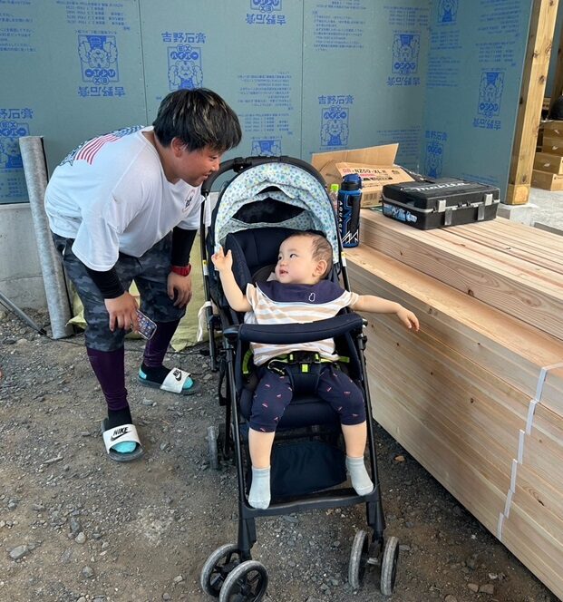 「あすと君」~暑い中、頑張ってくれました。「秋本棟梁ジュニア」と、楽しそうでした(^^♪
